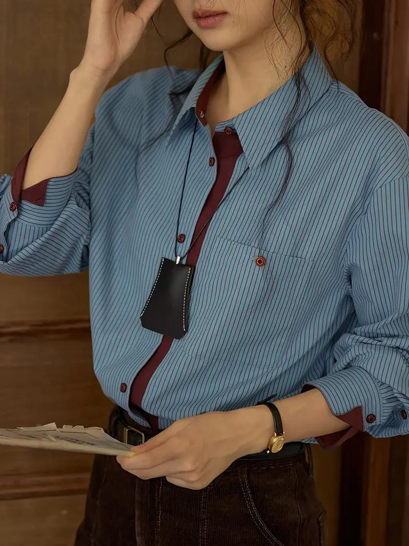Damen Gestreiftes Langarmhemd